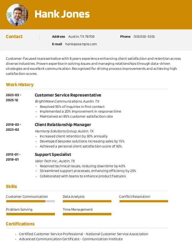 Our job-specific content suggestions help your resume stand out to hiring managers, ensuring you easily showcase your skills and achievements in a professional manner.