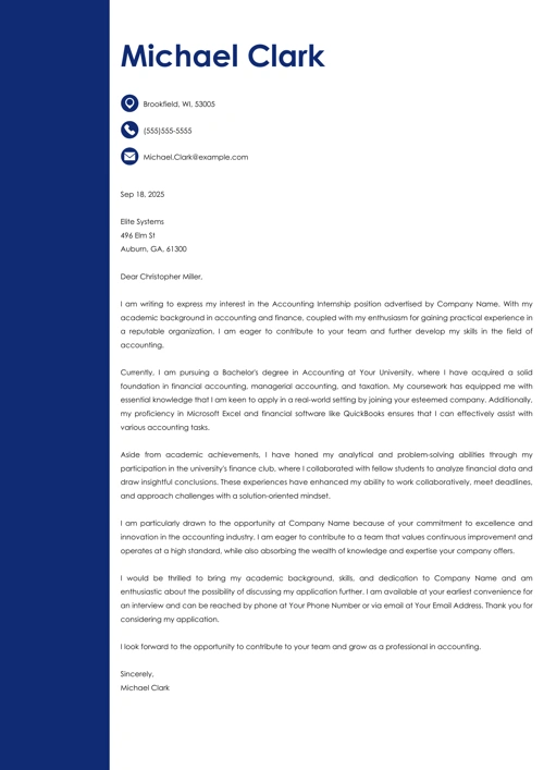 Cover Letter for an Accounting Internship With No Experience [Introduction Sample]