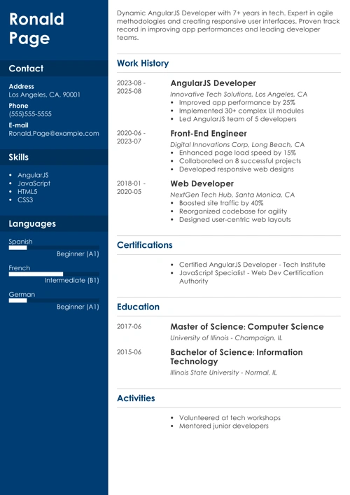 - Tips and examples of how to put skills and achievements on an AngularJS resume.