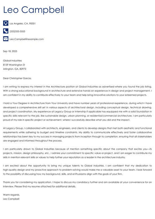 To read more about choosing the best architectural cover letter components, see this article: What to Include in a Cover Letter?