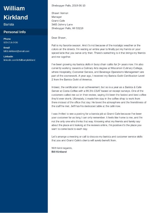 Start your barista cover letter from the beginning, too: