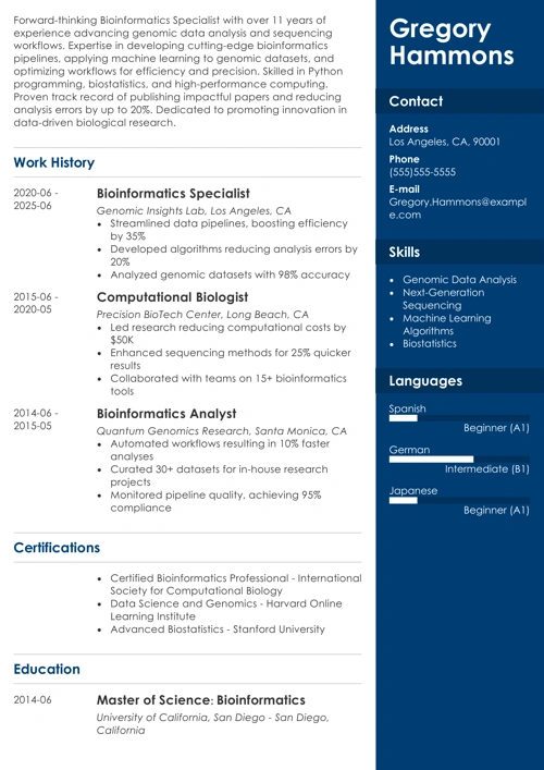 Bioinformatics Resume Example