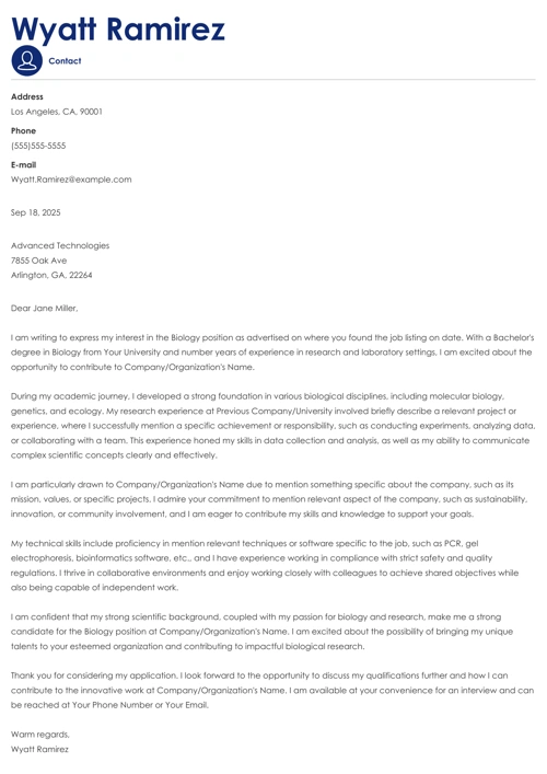 Below, you’ll see a sample cover letter for biologist jobs that get interviews, with a step-by-step process to adapt it to your needs.