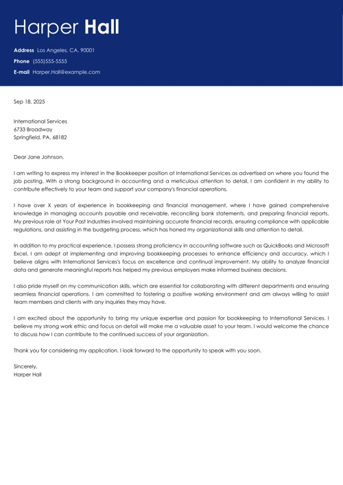That’s an in-the-black bookkeeping cover letter example.