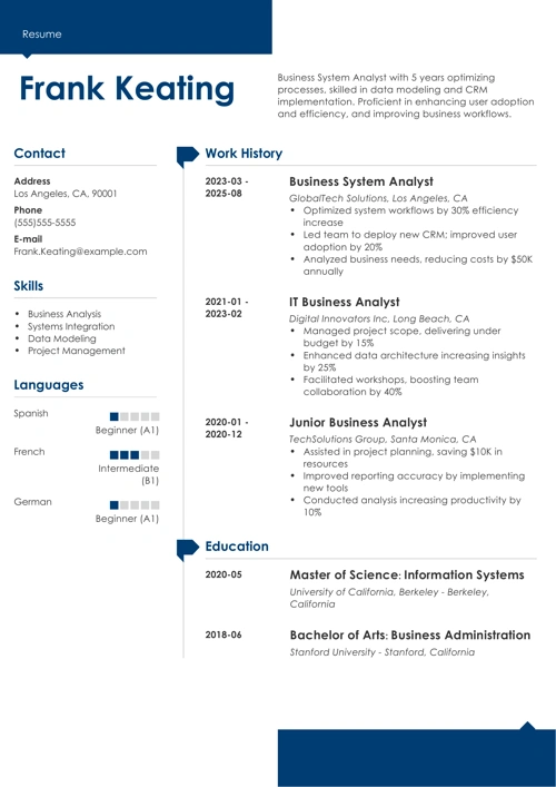 Entry-Level Business System Analyst Resume [Examples of Skills]