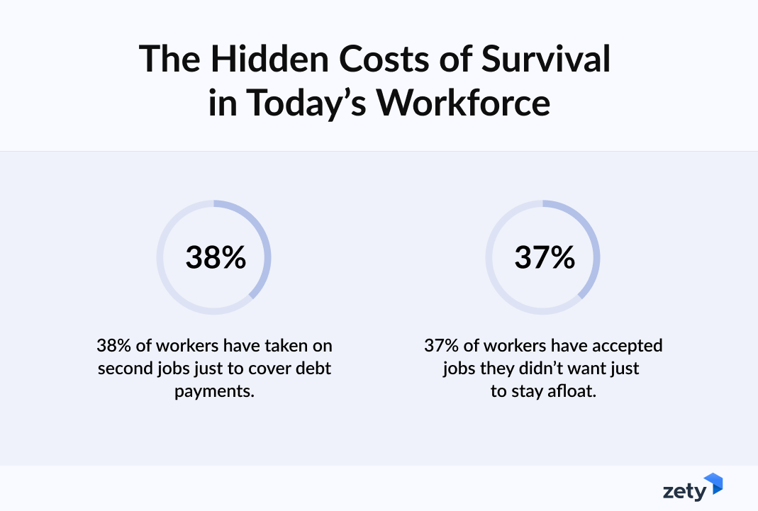 - Nearly 2 in 5 (38%) workers have taken on second jobs just to cover debt payments.