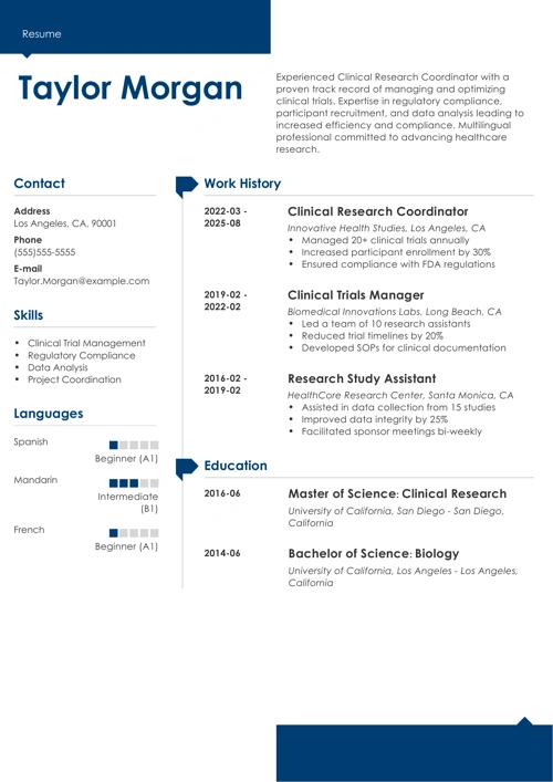 In the competitive field of clinical research, it’s essential to make your resume stand out. To capture the attention of hiring managers, select a good resume format that showcases your qualifications clearly and professionally.