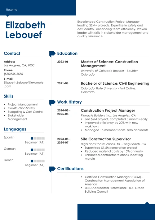- Include a quantifiable achievement or two to prove your construction successes.