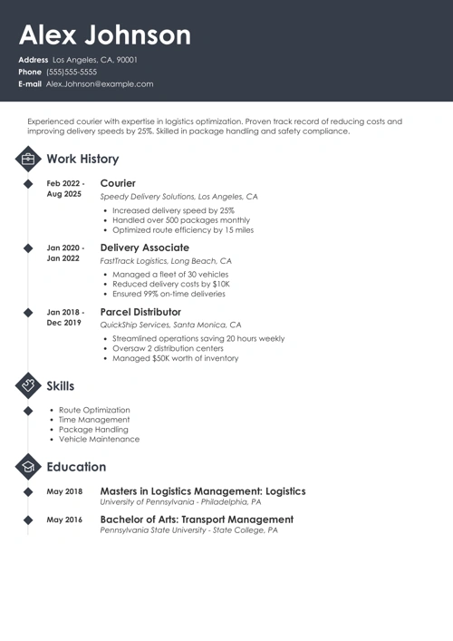 - A courier resume example that’s more effective than 9 out of 10 other resumes.