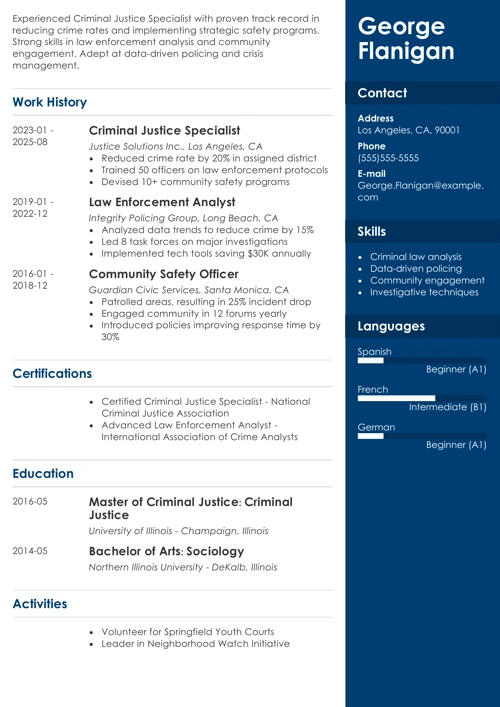 Criminal Justice Sample Resume
