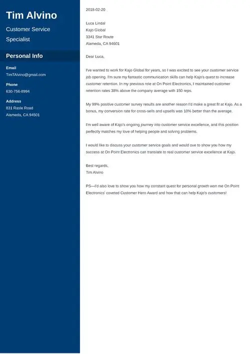 Now, let me show you a perfect customer service cover letter example.
