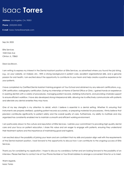 Dental Assistant Cover Letter Sample