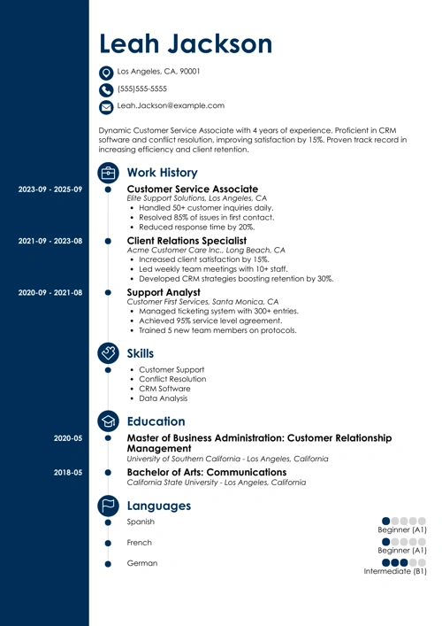 Making a resume with our builder is incredibly simple. Follow our step-by-step guide, use ready-made content tailored to your job and have a resume ready in minutes.