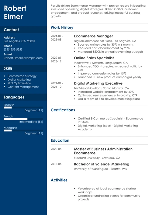 Ecommerce Resume Example