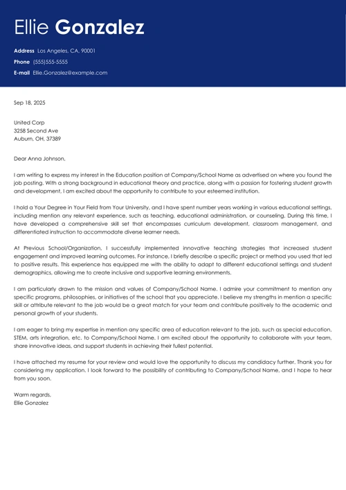 Education Cover Letter Sample