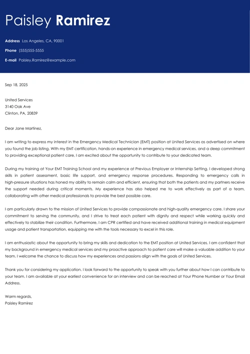 This guide will show you an EMT cover letter sample. Plus—the best tips on how to write a cover letter for emergency medical technician jobs step-by-step.