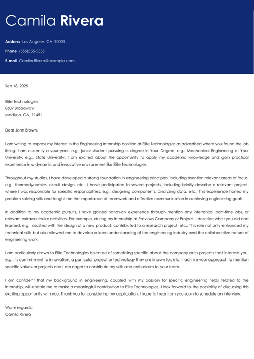Engineering Internship Cover Letter Template