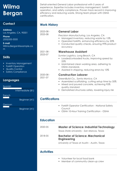 Resume writing can get overwhelming if you don’t have a clear blueprint. So we made one for you. Follow the steps, and your general labor resume will be ready in no time.