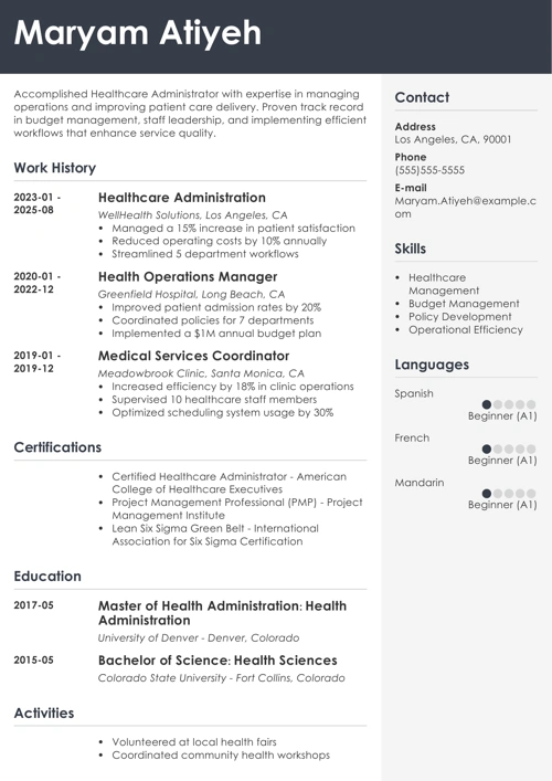 Sample Healthcare Administration Resume Template
