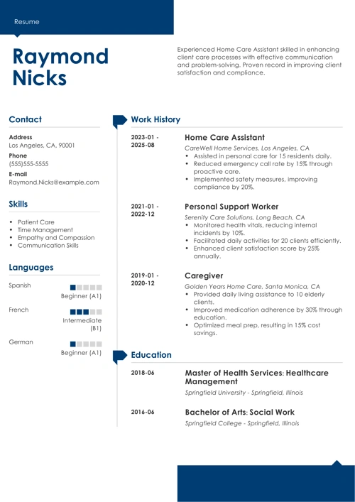 Pro Tip: How to write a resume with no experience in HHA jobs? Still follow all the best practices you see in this guide. However, when talking up past jobs, give them duties that resemble home health aide jobs the most.