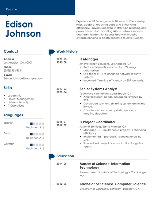 If you want HR recruiters to understand your IT manager resume, follow the proper resume structure.