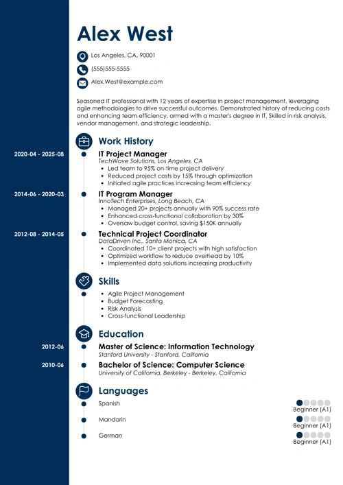 Your IT Project Manager resume needs a strategic design. Given the competitive nature of IT roles, it’s essential to grab the attention of hiring managers. What makes your resume stand out? A well-structured resume format that exudes professionalism can make all the difference.