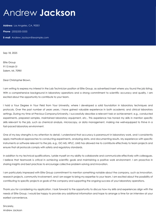 Lab Technician Cover Letter Template