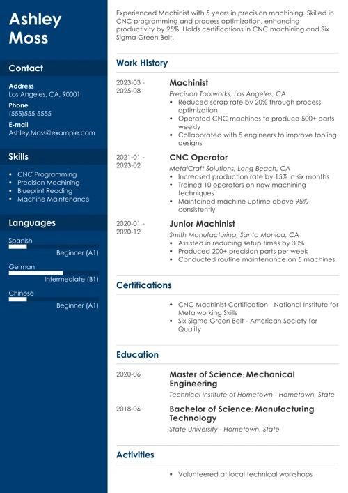 - Tips and examples of how to put skills and achievements on a machinist resume.