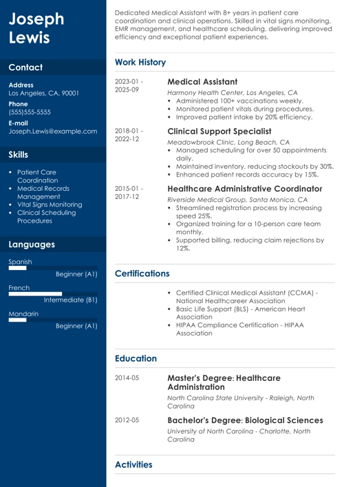 Sample resume made with our builder—See more resume examples here.