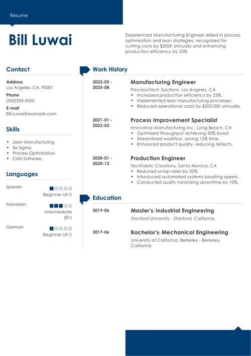 1. Start With the Right Format for a Manufacturing Engineer Resume