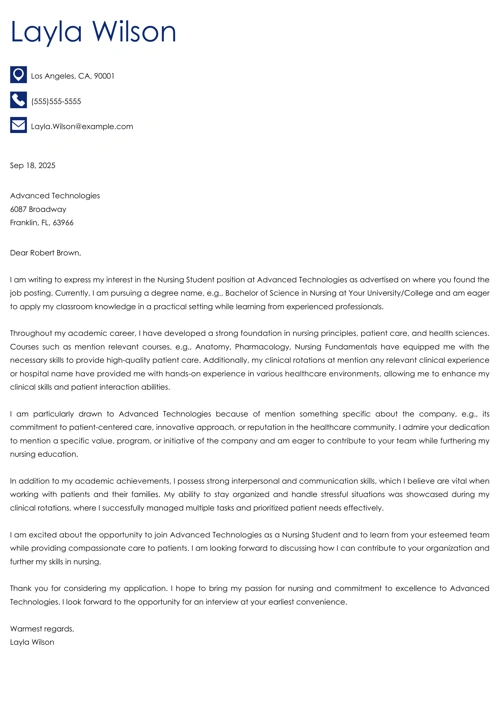 Use it to write your own Mayo-Clinic-worthy nursing students cover letter.