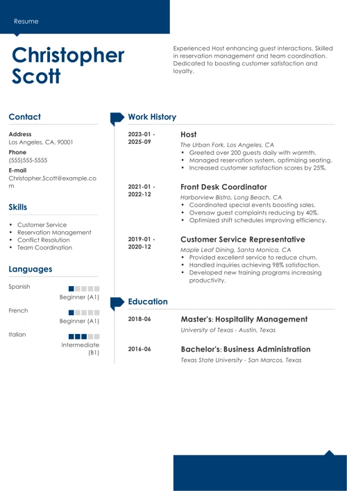Sample resume made with our builder—See more resume examples here.