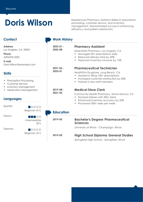 Want to have a pharmacy assistant resume like this one? Just follow our step-by-step guide!