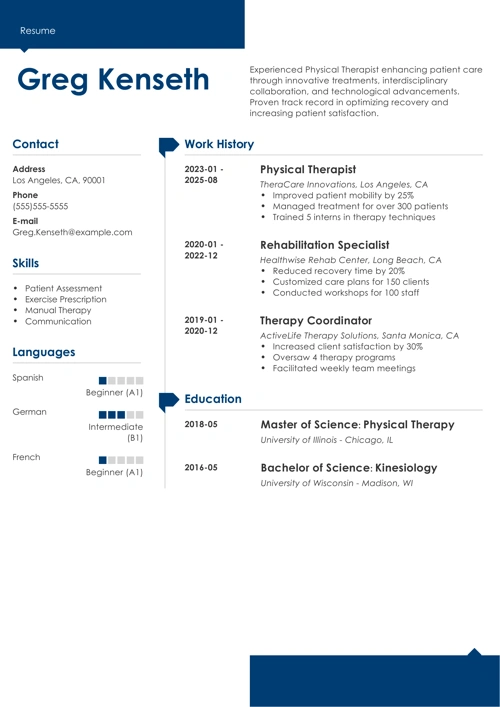 Want the steps to build a healthy physical therapy resume? See our guide: How to Make a Resume for Any Job: A Step-by-Step Guide