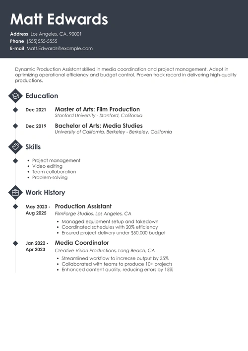 Pro Tip: Save your production assistant resume as a PDF. The PDF resume format ensures it renders correctly—which will be your job, after all.