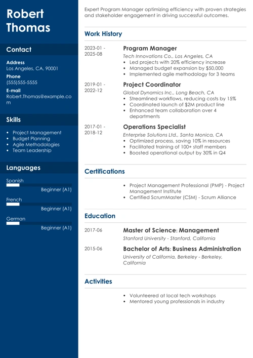Pro Tip: Always save your program manager resume template as a PDF to keep the resume layout intact. Use a different file format only if the job ad asks you to do so.