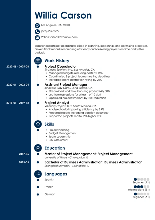 Your project coordinator resume needs to grab attention right away. With numerous applicants vying for each position, standing out is crucial. So, how do you make your resume pop? A well-structured resume format that's visually appealing can make a strong impression.