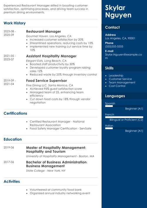 Sample resume made with our builder—See more resume examples here.