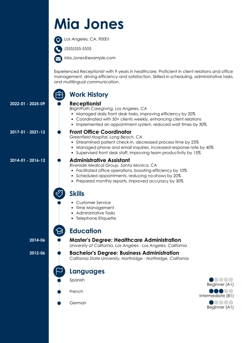 Whatever job you’re after, you can’t go wrong with a professionally designed resume template. Here, you’ll find some examples from our builder that are ready to fill out in just a few clicks.