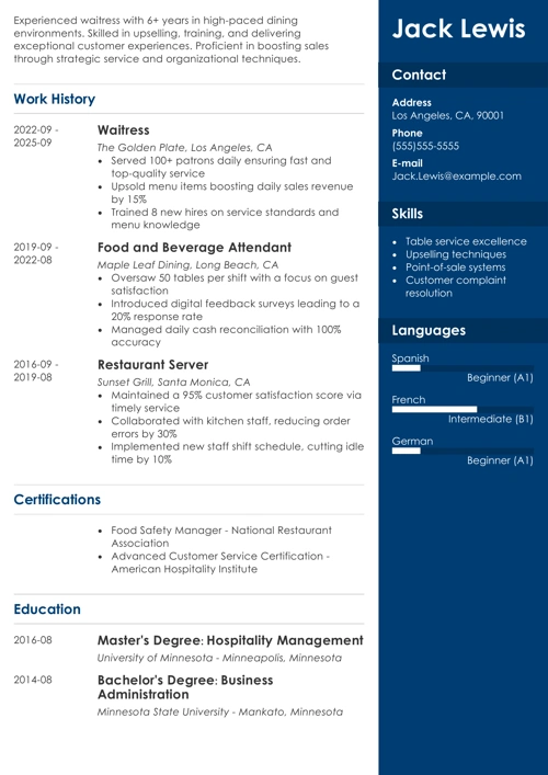 Sample resume made with our builder—See more resume examples here.