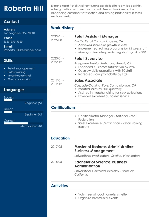 - If you have experience as a retail assistant manager, a resume summary is the way to go. Summarize your experience, highlight your key achievements, and use numbers to show your impact.