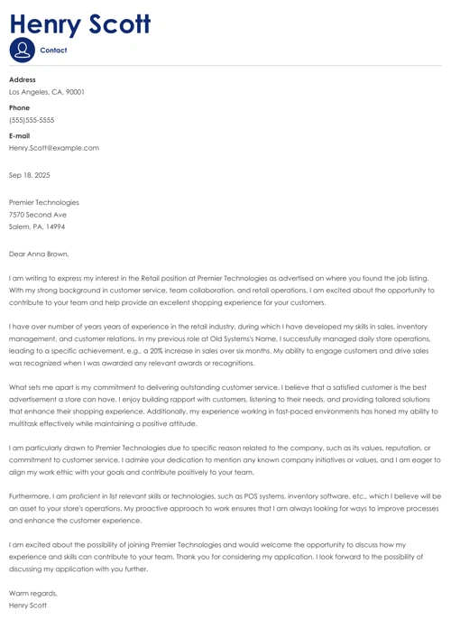 Retail Cover Letter Example