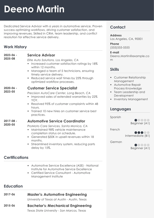 Service Advisor Resume Example