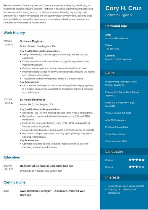 Pro Tip: Quantify your accomplishments whenever possible, such as the number of lines of code written, projects completed, or efficiency improvements achieved.
