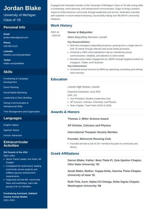 Easy, right? Let’s look at two examples of sorority resumes to make it crystal clear.