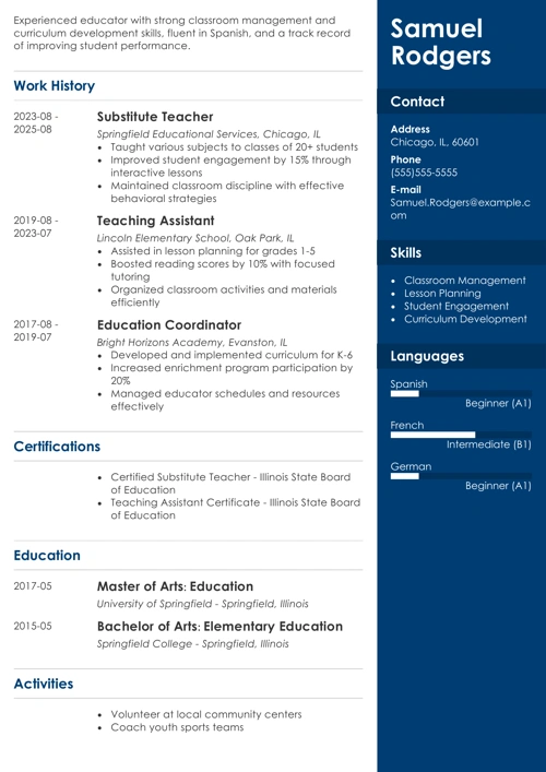 Substitute Teacher Resume Example