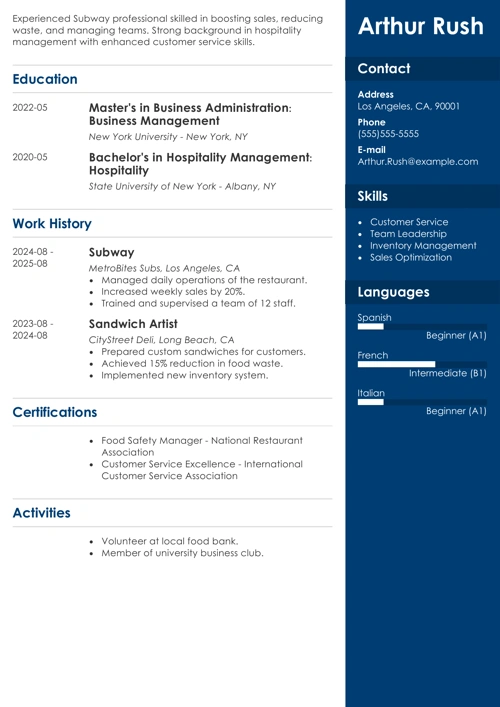 You can also choose from a collection of resume templates to make sure you include everything and create a Subway sandwich artist resume that can pass the ATS.