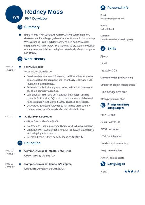 Sample resume made with our builder—See more resume examples here.
